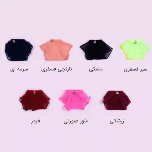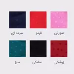 زرشکی, سبز, سرمه ای, صورتی, قرمز, مشکی
